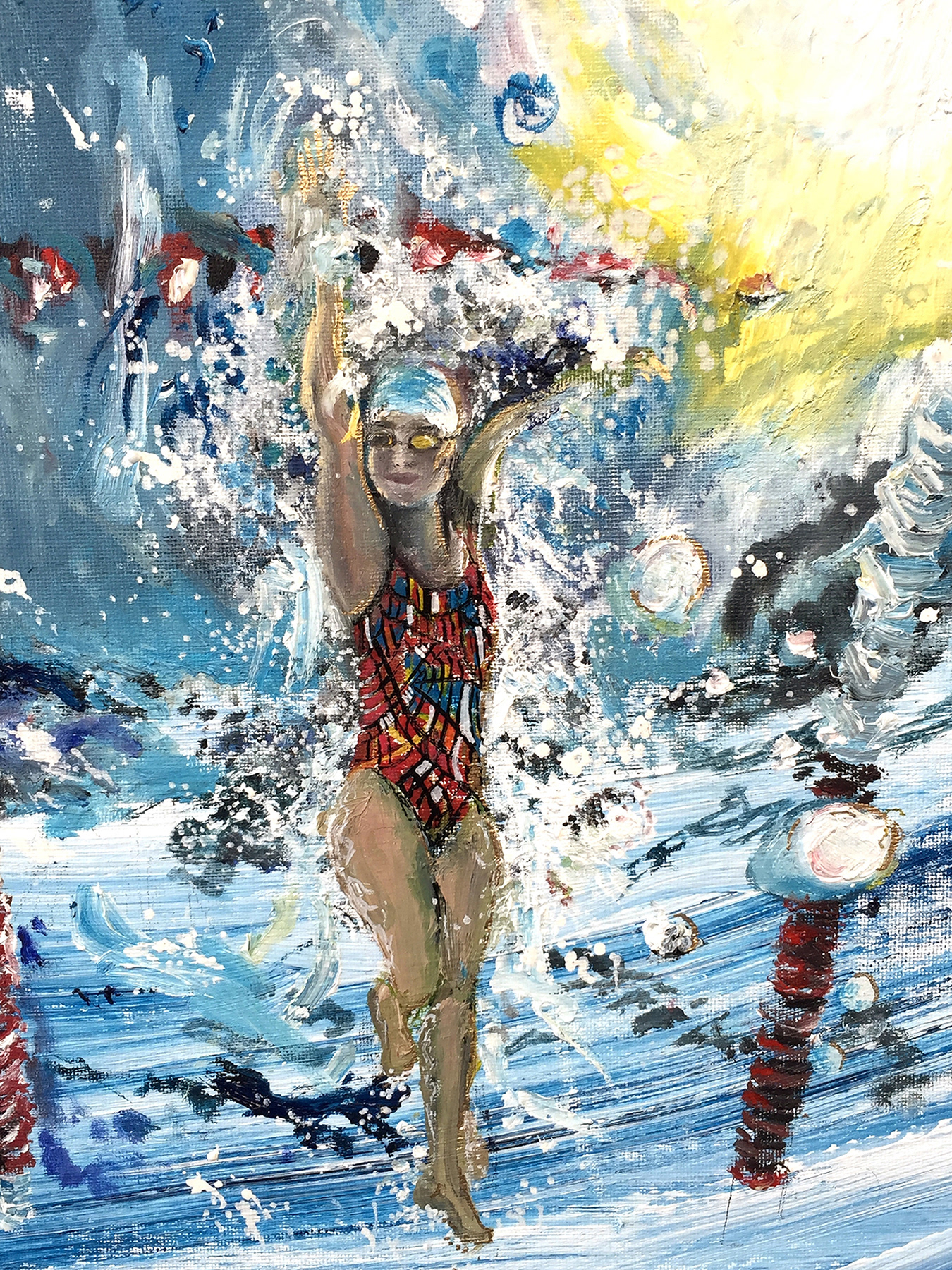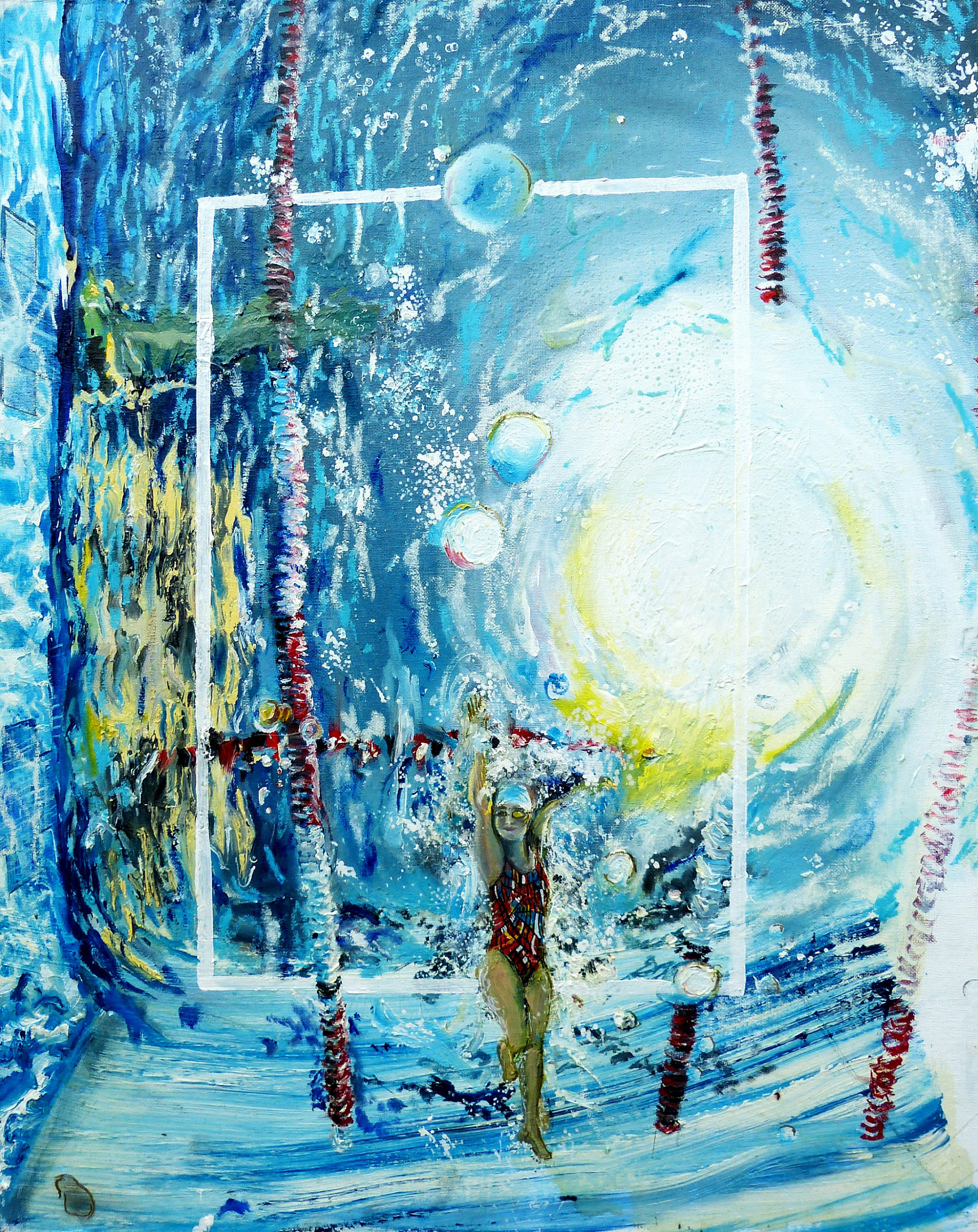 Pool from worm's eye perspective. Oil and acrylic on canvas board.